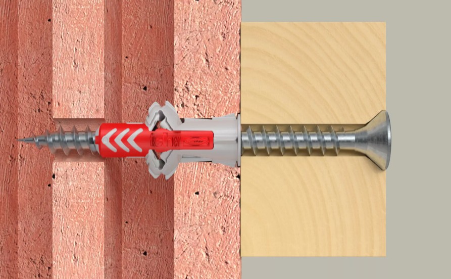 - O rebordo estreito da bucha impede que resbalde dentro da perfuração.
